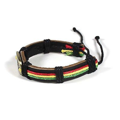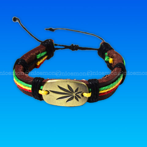 Rasta Leather Wrist Cuff Canna Leaf Emblem Wrist Bracelet Bob Reggae IRIE