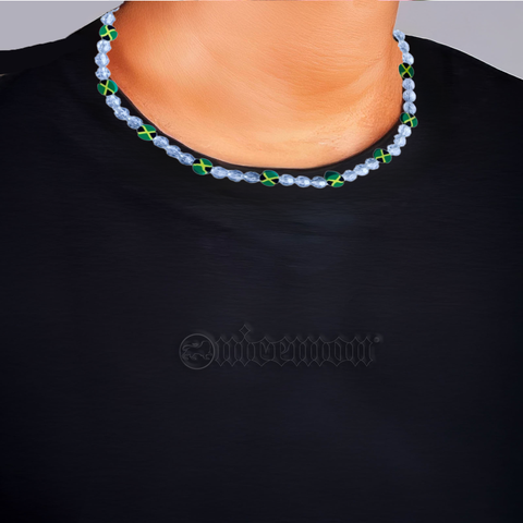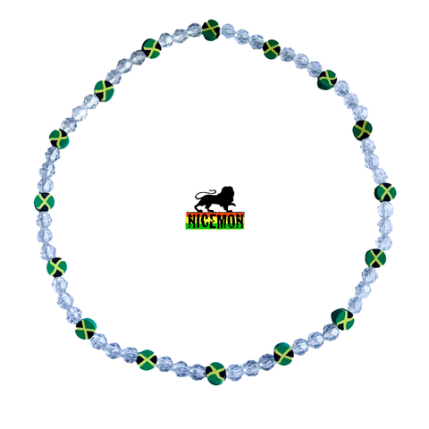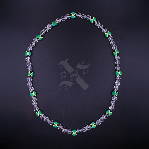 Jamaica Fimo Bead Clear Faceted Bead Necklace Reggae Rasta Necklaces 20"