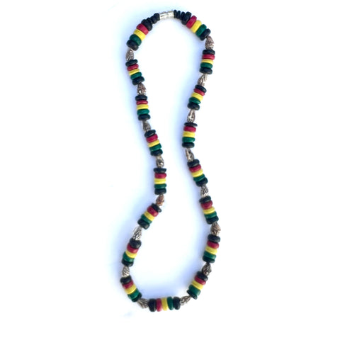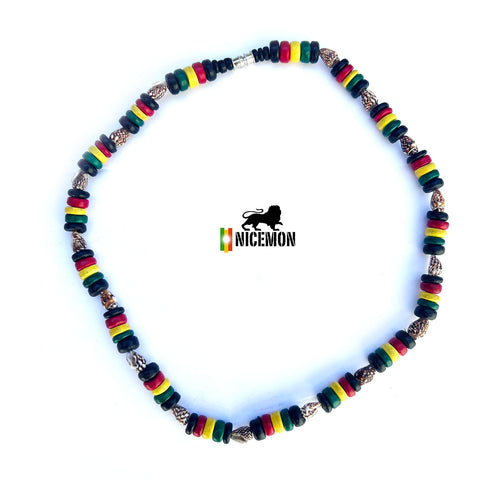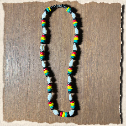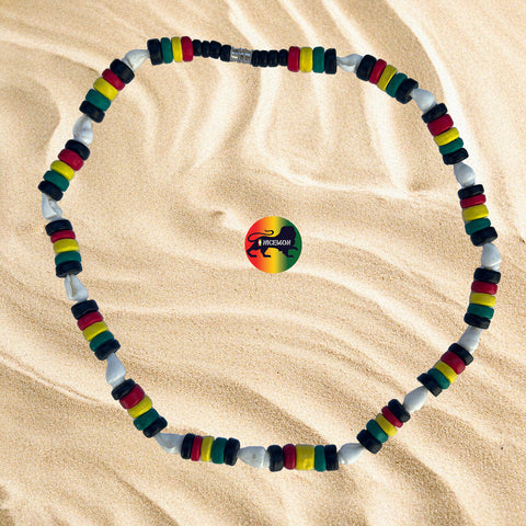 Step into the "Roots" vibration of Stylish Rasta Color Nasa Shell and Coco Bead Necklace Every piece is crafted with "Friendly Ease" to ensure a high-frequency experience. Good to wear to a Reggae Concert Party.